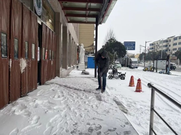 为保障患者就医通道安全畅通,确保医院各项工作平稳有序开展,舞阳县中医院迅速启动应急响应机制,在医院领导的带领下,十几名职工、党员主动作为,自发投身扫雪除冰行动,手持扫帚、铁锹等工具,齐心协力奋战在清雪一线,现场气氛热烈,干劲十足。