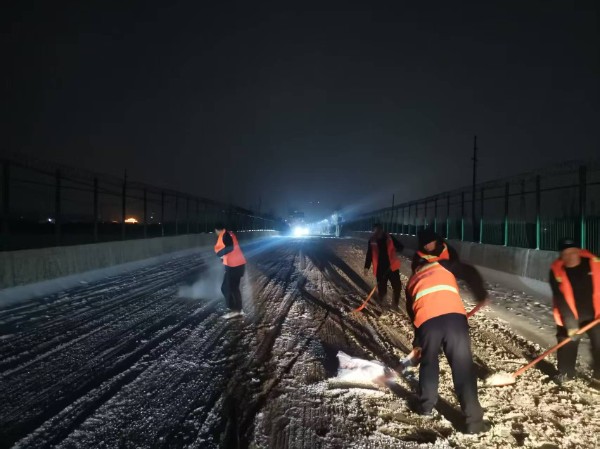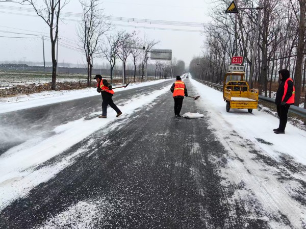 道路通,则民心安。保障交通“主动脉”畅通是此次防范工作的重中之重。该县交通运输局、公安局对交通重点路段、桥梁涵洞等易结冰、事故易发区域加强巡检巡路,落实道路除冰防滑、交通引导等工作。县城市管理局组织人员连夜对城区主干道撒布融雪剂,防止夜晚温度低,结冰上冻,同时,对各道路进行人员分包,开展除雪除冰,为民众出行筑牢“安全屏障”。