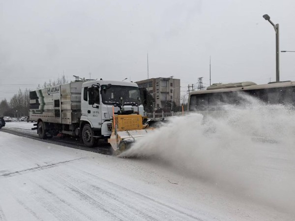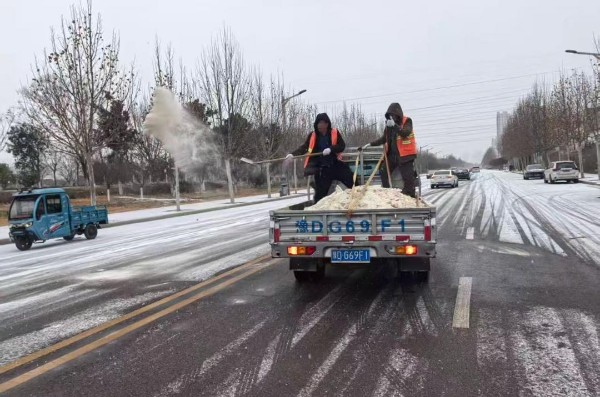 降雪后,各部门联动出击:区环卫中心投入应急队伍4支80人、环卫工人300余人,除雪运雪等车辆20台、撒布机6台,辖区主次干道已撒布融雪剂100余吨,全力清运积雪;区城市管理局出动50余名执法人员,巡查道路37公里,重点值守并清除路口、站台等区域积雪结冰;区交通运输局加强县乡道路巡查管护16公里,及时处置积雪结冰路段,确保农村道路通行。
