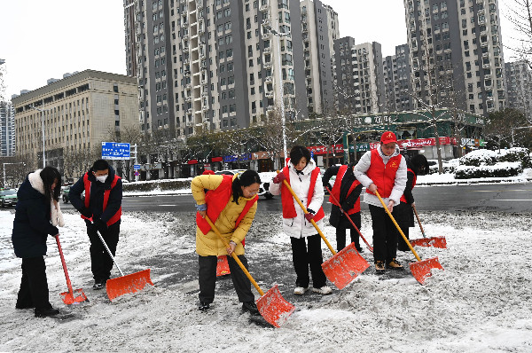 雪情就是命令。农银人寿河南分公司第一时间动员部署,要求所辖各级党组织秉承“务必保障职场安全、通道畅通、客户便利”理念,组织党员、青年骨干开展清雪除冰志愿服务行动,以实际行动践行为民服务初心。在郑州市商鼎路北、和光街东,农银人寿河南分公司机关各党支部联合郑东新区商都路康宁社区党支部开展“风雪同行显担当 守护有我践初心”清雪除冰活动。双方支部的党员、干部充分发挥先锋模范作用,以“排头兵”姿态冲锋在前,大家手持铲雪工具,对主次人行道、出入口等关键区域的积雪、残冰开展拉网式清理,精准排查每一处易滑死角,做到不留隐患、不漏盲区。