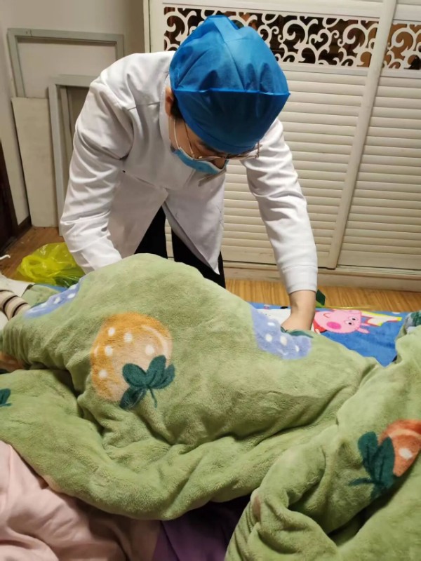 平日仅需十多分钟的路程,那夜却异常艰难。狂风卷着雪粒扑打而来,路面湿滑,举步维艰。近一小时后,李艳军终于抵达患者家中。她的头发、睫毛都结上了冰霜,简单拂去积雪、换上工装,便立刻投入工作。