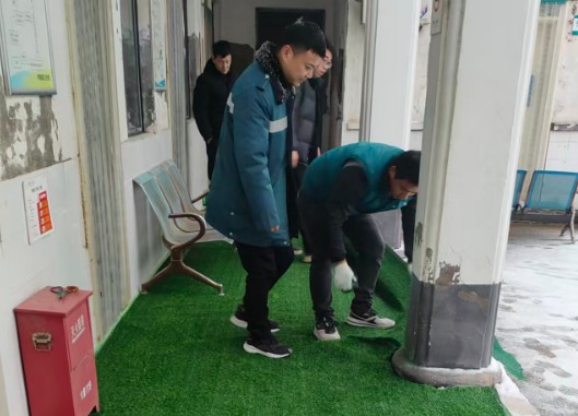 经过近两个小时的奋战,卫生院院内主干道、门诊楼周边等区域的积雪残冰被彻底清除干净,一条条整洁通畅的“暖心就医路”全面铺开,防滑草垫如同冬日里的安全屏障,为就诊群众筑牢了出行保障。此次扫雪除冰行动,不仅及时化解了恶劣天气带来的安全隐患,更生动展现了李集镇卫生院全体职工团结协作、不畏严寒、服务为民的良好精神风貌。