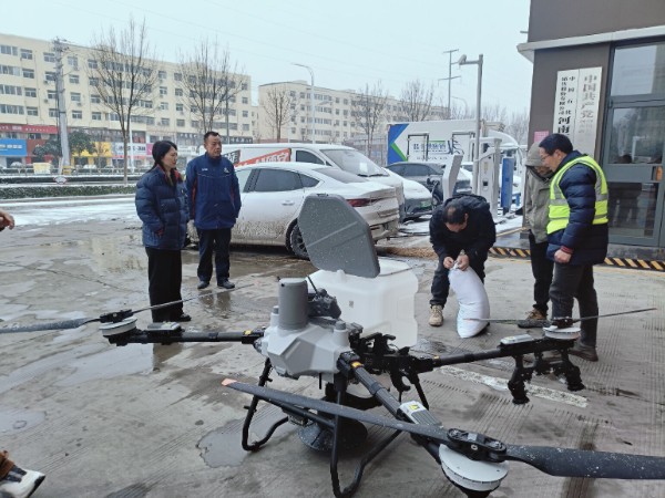 无人机“翼”展破冰雪 中国石化商丘石油科技赋能保民生