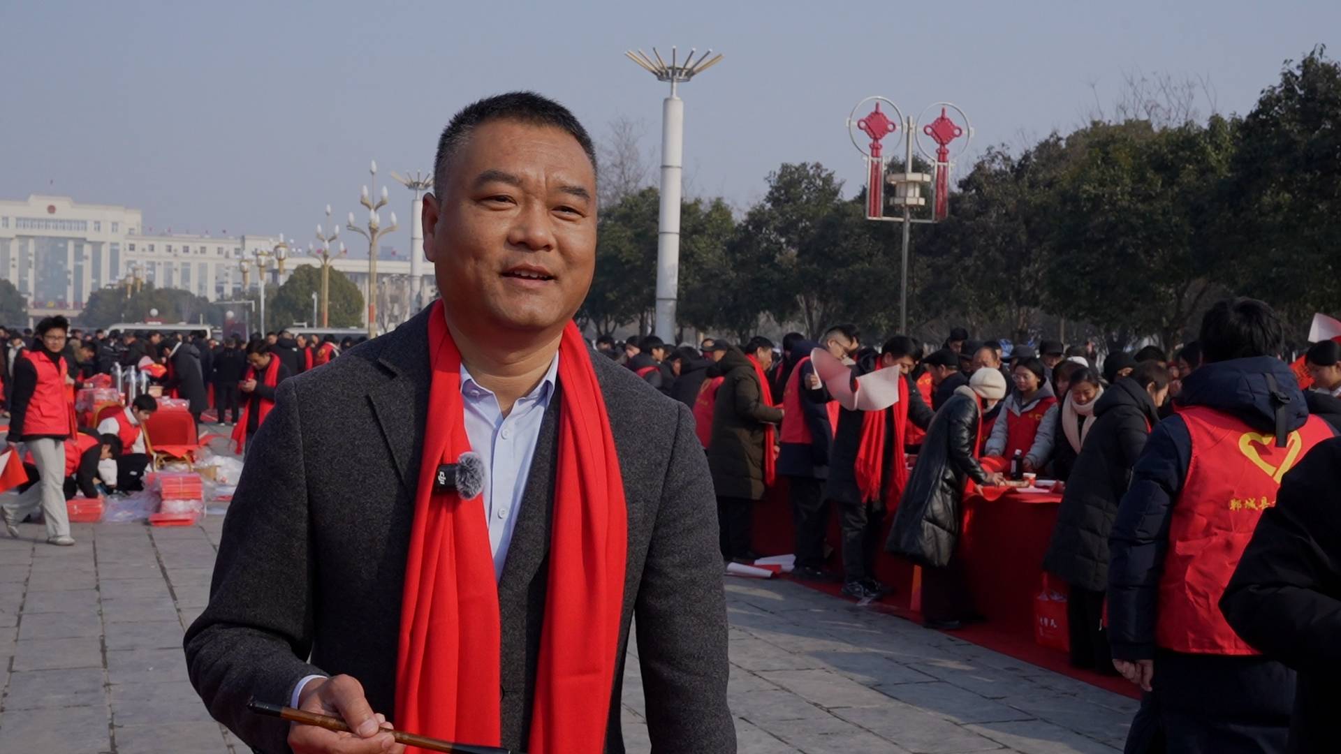 河南省文联副主席、河南省书法家协会主席吴行说:“每年新春来临,全国上下一盘棋联动,万福迎春的活动在全国各地开展,今年河南的活动是在郸城启动,郸城不仅是书法的胜地,群众基础广泛,也是诗词之乡,所以说这里文脉广泛。在这里举行启动仪式群众热情高涨,书法家也希望到这个地方来,大家共同欢乐迎春送福万家。这个活动年年举行,从今天开始在全省各地陆续开展起来了,我们有多场万福迎春活动,而且我们有数千名书法家参与,今年我们在郸城启动,希望有个好的开头,有一个开门红。”