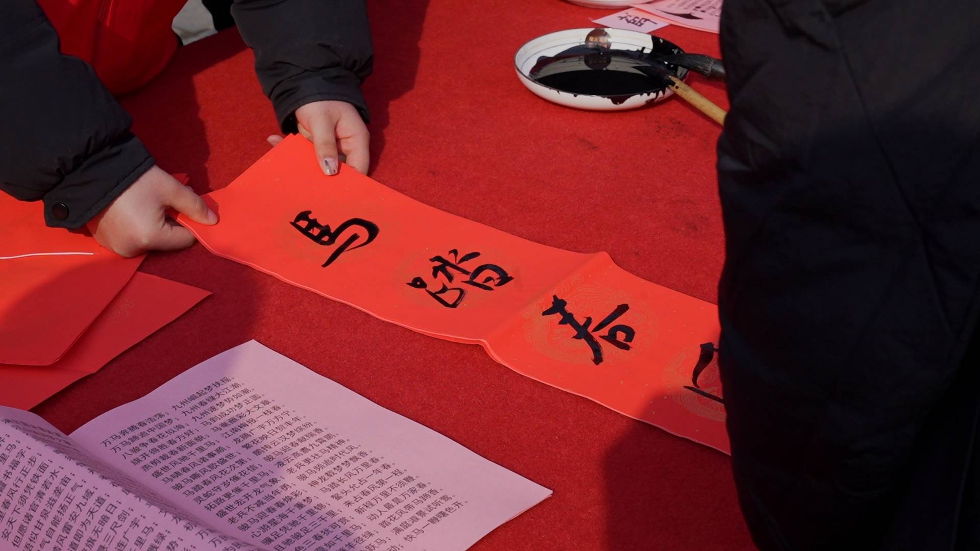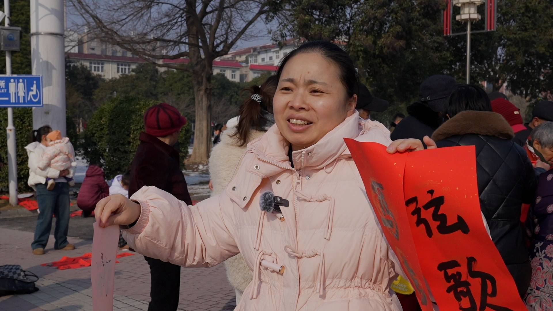 市民刘宁宁说:“我今天现场领了5副春联,春联一写年味就来了,感觉年味非常浓厚,气氛都来了。”