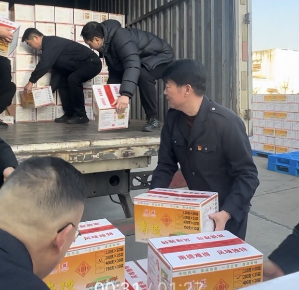 在仓储物流区,寒气逼人,但由公司经理李洪江亲自挂帅的“应急突击队”却干得热火朝天。装卸工人们冒着严寒,肩扛手抬,将一箱箱货物装上卡车。