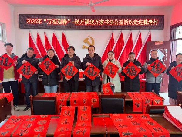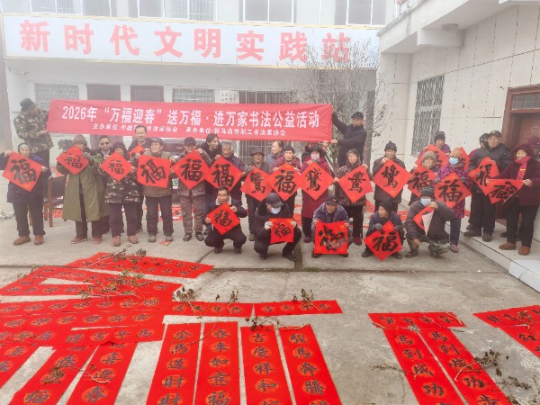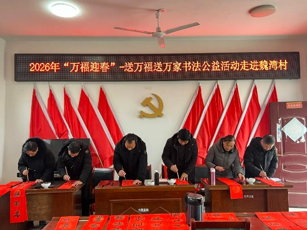 丙午马年春节的脚步日益临近,为传承弘扬中华优秀传统文化,让新春的喜庆氛围浸润基层乡村,1月27日,由中国职工书法家协会主办,驻马店市职工书法家协会承办的2026年“万福迎春”——送万福·进万家书法公益活动,先后走进遂平县文城乡东营村、魏湾村,以笔墨为媒传递新春祝福,用文化惠民点亮乡村年味。