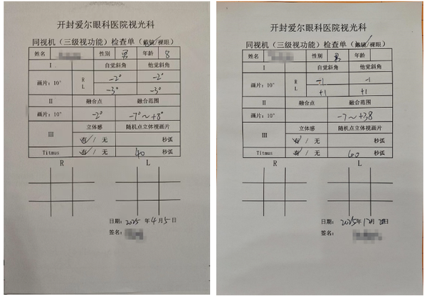 方案确定后,阳阳开始了每周2-3次、规律到院的视觉训练。在视光师的专业指导下,训练针对他薄弱的集合与融合功能进行强化。一个阶段(12次训练)结束后,复查结果令人欣喜:阳阳的视功能指标得到显著改善,最直观的是,同视机检查显示他的融合范围已恢复至正常值。这意味着他双眼的协同能力得到了有效重建,阅读时的舒适度和稳定性大幅提升。目前,阳阳仍在进行每周两次的巩固训练,以确保效果长期稳定。