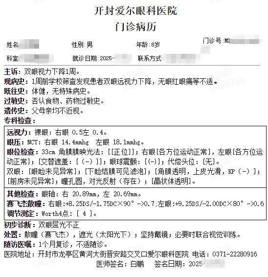 开封爱尔眼科助8岁高度远视男孩告别"瓶底镜":双面复合美薄镜片带来清晰与自信