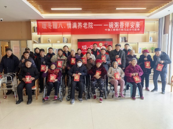 岁至腊八,寒意渐浓,尊老情暖。为深入传承中华民族尊老敬老的传统美德,扎实践行“金融为民”的初心使命,2026年1月26日上午,中国工商银行驻马店分行团委联合高铁支行、分行营业部,组织青年志愿者团队走进当地养老院,开展“暖冬腊八,情满养老院”主题慰问活动,为院内老人们送上冬日里的暖心关怀与腊八佳节的美好祝福。