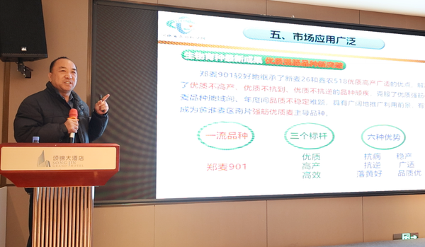 正阳县豫正种业有限公司市场总监张红表示,郑麦901商品性好、综合抗性优、产量高且卖价高,作为市场紧缺的强筋小麦品种,既能让农户规避种植风险,又能为其带来可观的收益。此次参会进一步了解了产品优势,坚定了2026年大力推广郑麦901的决心。