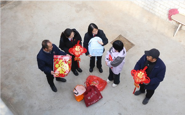 2026年2月10日,农历腊月二十三。安阳县人民法院组织干警带着精心准备的“新年礼物”——棉衣、文具、保温杯、精美的春联和中国结,还有小年传统芝麻糖,走进辖区永和镇裴庄村困难女孩小丽家中,开展了“爱心妈妈”结对帮扶留守困境儿童活动。