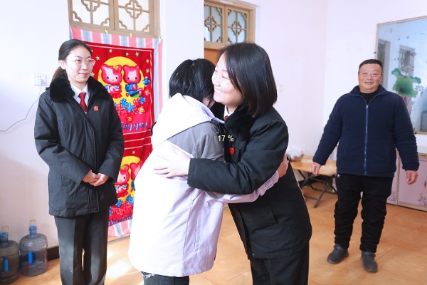 “小丽,我们是法院的,快过年了,来看看你。”