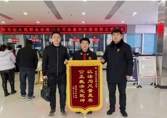 新春伊始,万象更新,春节假期后的首个工作日,当事人委托律师将一面写有“以法为尺量是非 公正裁决定乾坤”的锦旗送到郸城县人民法院汲水人民法庭庭长侯海峰的手中,鲜红的锦旗、真挚的话语,为郸城法院新一年的工作奏响了温暖开篇。