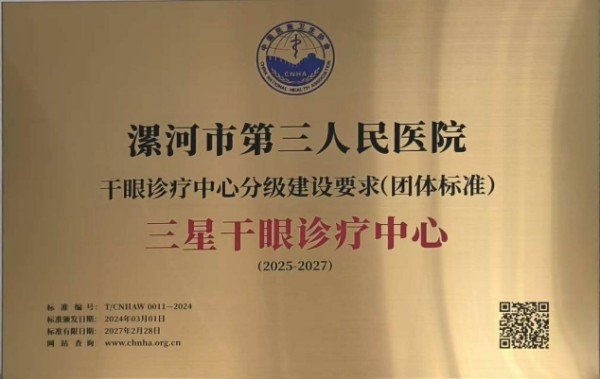 1月30日,国家级“三星干眼诊疗中心”在漯河市第三人民医院正式揭牌。这标志着医院眼科诊疗水平迈入标准化、专业化发展新阶段。