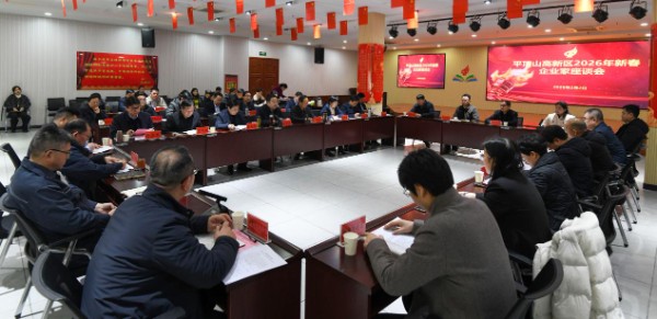 2月2日下午,平顶山市高新区举行2026年新春企业家座谈会,与企业家们欢聚一堂,共迎新春、共话发展、共绘蓝图。高新区党工委书记孙国权主持会议并讲话,区党工委副书记、管委会主任齐瑞锋等在区的党工委、管委会班子成员出席会议。神马尼龙化工、平芝高压等15家企业负责人参加会议。