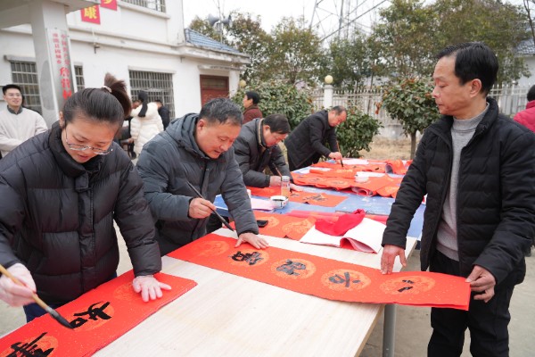“政通人和歌盛世,风调雨顺兆丰年……”马年的脚步声越来越近。2月3日,淮滨县文联组织部分书法家、摄影家,深入该县固城乡詹营村为群众义写春联、拍全家福,祝贺大家马年吉祥,阖家幸福、安康。