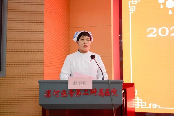 最后,该院护理部主任赵春红作总结发言。她全面回顾了本实习周期护理教学工作的开展情况,详细梳理了实习生们从懵懂青涩到熟练干练的成长蜕变,对全体带教老师的辛勤付出、无私奉献以及实习生们的刻苦钻研、努力拼搏给予高度评价与充分肯定。同时,赵春红也为即将踏上职业新征程的实习生们指明了前进方向、寄予了殷切期望。她提到,护理工作是一份需要爱心、耐心、细心与责任心的职业,希望同学们带着本次大会的荣誉与嘱托,带着在二附院收获的知识与成长,在未来的护理岗位上坚守医者初心、精进专业技能,永葆爱心与温度,以专业能力守护人民健康,以人文关怀传递医者大爱,努力在护理事业的广阔舞台上实现自我价值、书写精彩篇章。