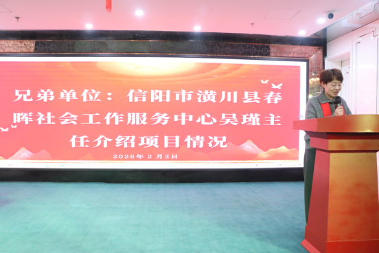 本次团拜会特意安排了公益项目分享环节,展现基金会扎根一线的服务成效。信阳市潢川县春晖社会工作服务中心主任吴瑾详细汇报了其承接的司法社工项目。2023年,该中心对9名附条件不起诉未成年人开展“一人一策”个性化帮教,通过心理疏导、家庭干预、普法教育等方式,助力青少年重回正轨。她以一个16岁男孩的帮教案例为例,阐述了社工如何通过持续陪伴、情绪日记、家庭关系调适等专业方法,缓解青少年心理困境,降低再犯风险。“从法官到社工,转变的是身份,不变的是让每个孩子走向光明的初心。”吴瑾的分享,令在场嘉宾感受到司法社工工作的温度与深度。