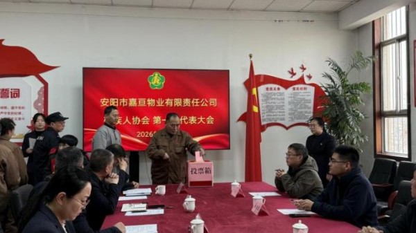 安阳市残疾人联合会组联部、文峰区残疾人联合会、文峰区东关街道办事处相关负责人,易都后勤保障集团、嘉亘物业相关责任人,企业工会代表、残疾职工代表共同参会。会议严格遵循规范程序,审议通过《嘉亘物业残协委员选举办法》,以无记名投票、现场监票计票的方式,规范选举产生首届残协委员及领导机构,张永君当选主席,王强、杨柳青(视力残疾)当选副主席。新当选残协主席张永君表示,将切实履行“代言人、贴心人、助推器”职责,扎根企业、贴近职工,全力做好残疾职工服务工作,不辜负各方期望与残疾职工的信任。