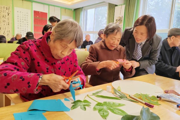 除了日常照料,丰富多彩的活动更是让老人们乐在其中。春秋时节的户外踏青,护理员提前备好遮阳帽和温开水,陪着老人们逛公园、赏花草,还贴心地帮大家拍照留念;每周二下午的手工课,彩纸、剪刀、胶水一应俱全,护理员手把手教老人们做手工。86岁的郭翠芬女士手巧,剪出的红双喜窗花栩栩如生,护理员蹲在一旁递工具,还不忘夸赞:“阿姨您这手艺,比店里卖的还精致!”张叔手指不太灵活,院长孟丽霞就握着他的手,教他折千纸鹤。看着桌上摆满的窗花、千纸鹤、小纸船,老人们成就感满满。“在家闲着也是闲着,在这儿做手工,既能打发时间,还能多动动脑筋,越玩越精神!”张叔捧着自己折的千纸鹤,笑得像个孩子。