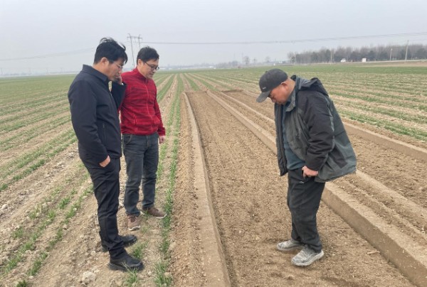 服务团专家首先查看了冬小麦的生长情况。针对部分地块去年积水较为严重,小麦播期较晚、长势较弱的问题,许昌市农科院小麦研究所所长田香伟提醒种植户,对于弱苗,一定要因苗施肥,促弱转壮保证分蘖,可在返青期至起身期和拔节后期至孕穗期两次追肥,每次每亩追施尿素7-8公斤,以提高亩穗数、增加穗粒数。另外,春季气温起伏大,可能出现干旱、“倒春寒”等气候灾害,要密切关注天气和土壤墒情变化主动应对。在寒流来临前可喷洒抗冻调控制剂,缺墒地块及时补充灌水,以改善土壤墒情、调节近地面层小气候、减小地面温度变幅预防低温冻害。