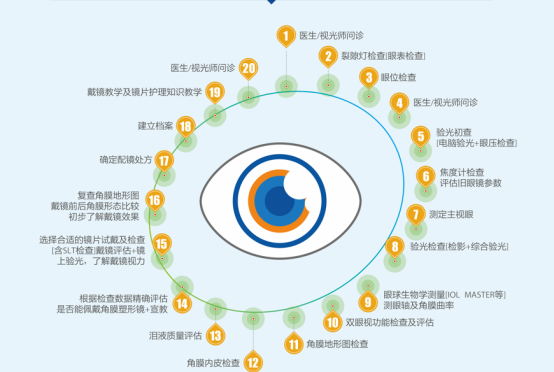 验配一副适合的角膜塑形镜,需进行裂隙灯检测、视力检查、验光、视功能检查、眼压检查、角膜地形图检查、眼表泪膜分析、眼轴测量、眼底照相、角膜内皮、扫描激光眼底检查等一系列专业检查,排除配戴禁忌症后,进行可视化试戴评估或者智能数字化验配,才能验配出适合孩子的角膜塑形镜。