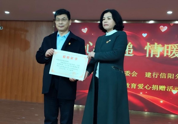 同心筑梦暖特校 金融有爱润无声——建行信阳分行向信阳市特殊教育学校爱心捐赠显担当