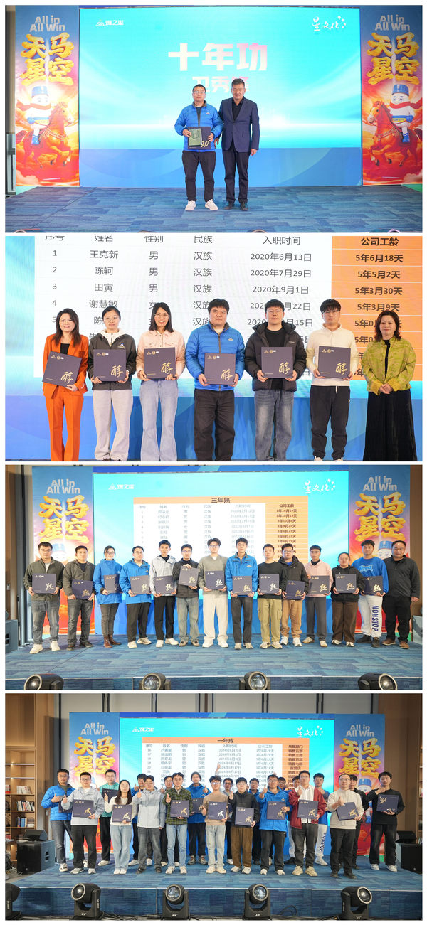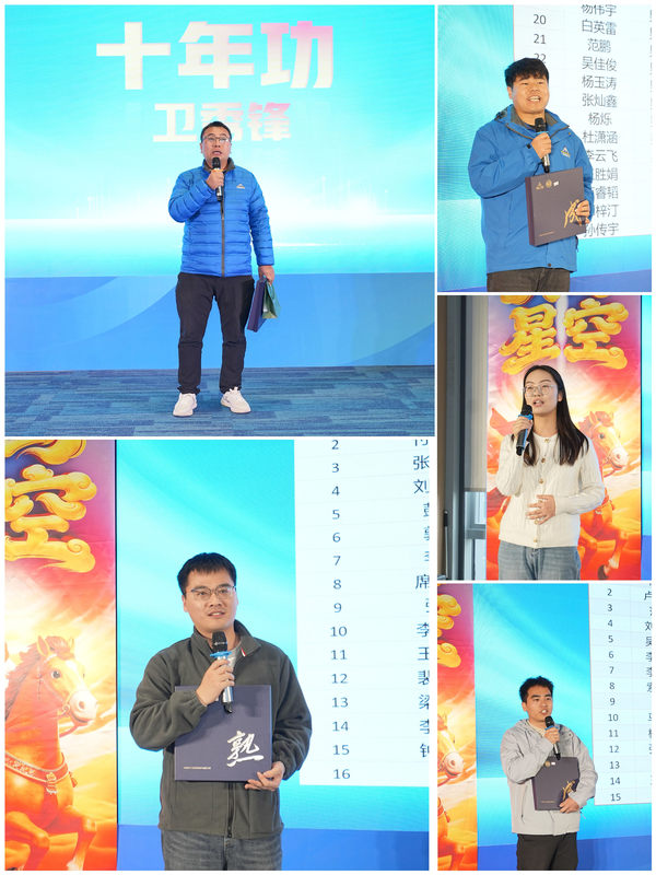 年度颁奖盛典同步上演,年度之星、优秀团队等多个重量级奖项逐一揭晓,表彰过去一年里默默耕耘、业绩突出的个人与集体。获奖者登台领奖,部分代表分享成长心得,用真实经历传递奋斗力量,激励全场员工奋勇争先、再创佳绩。