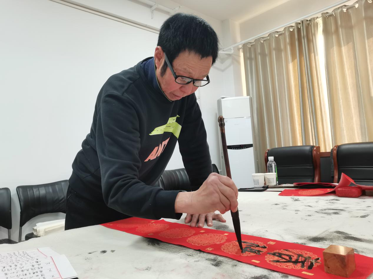 义写现场暖意融融、墨香四溢,大红宣纸整齐铺展,笔墨砚台依次排开,处处洋溢着热闹喜庆的年味儿。马敬国凝神聚力、挥毫泼墨,“福到门庭梅吐艳 马驰道路柳生烟”“春阳送暖芳菲地 骏马奔驰锦绣程”……一副副对仗工整、寓意吉祥的马年春联,一个个遒劲有力、饱含期许的“福”字跃然纸上,将新春的祝福、对新闻工作者的祝愿凝于笔端。