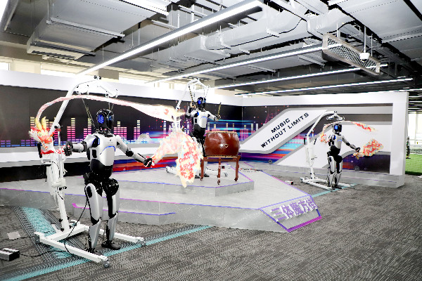 中原科技城人工智能科技产业园中原异构人形机器人4S店内,挥舞彩带的“乐队”组合机器人“一机难求”,进行年会表演、商超迎宾的预订单子排到了春节大年初七后。