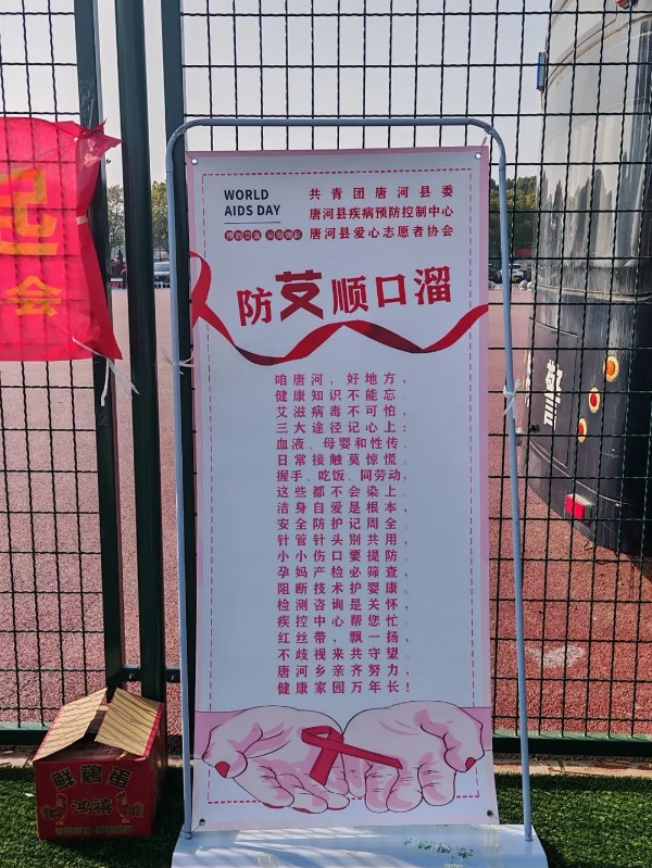 活动现场还设立了防艾顺口溜宣传展架,以群众听得懂、记得住的语言,将预防要点编成朗朗上口的口诀,简明扼要地传递科学信息。志愿者同步向群众发放宣传页,耐心讲解防艾政策与求助渠道。