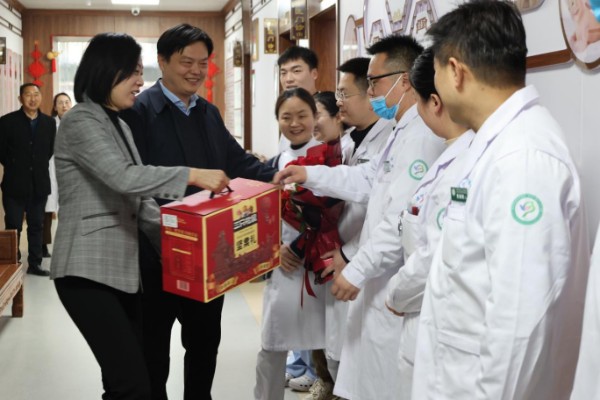 新春将至,暖意融融。在2026年新春佳节来临之际,为向坚守一线的职工送上节日关怀与美好祝福,2月14日,漯河市三院(市妇幼保健院)党委书记楚中亚、院长张华丽带领院领导班子成员,带着新春慰问品与真挚祝福,深入医院各临床、医技及行政科室,开展春节前走访慰问活动,向全院一线职工致以最诚挚的节日问候和最崇高的敬意,对大家长期以来立足岗位、无私奉献、坚守医疗一线的辛勤付出表示衷心的感谢。