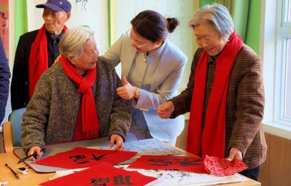 “平时孩子们忙,本以为今年过年又只能静静待着,没想到养老院这么热闹,有吃有喝还有节目看,心里暖乎乎的!”82岁的侯文杰女士拉着靳雅婷的手,眼眶微微泛红。94岁的老兵于进铺好红纸,挥笔写下“马年大吉”,字迹苍劲有力,满脸欢喜地说道:“以前觉得到了养老院就是熬日子,来了才知道,这儿比家里还热闹。每天还能学到新鲜东西,越活越有劲儿!”