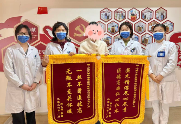 春节前夕,郑州爱尔眼科医院上演了温馨的一幕。韩女士专程赶来,将两面精心制作的锦旗送到了熊凤枝主任及医护团队手中。