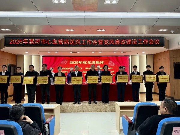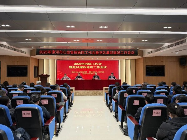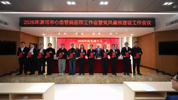 2月28日下午,漯河市心血管病医院(市六院)召开2026年工作会暨党风廉政建设工作会议。会议贯彻落实省、市卫生健康工作会议精神,全面总结“十四五”时期及2025年工作成效,科学谋划“十五五”发展蓝图,部署2026年重点任务,动员全院广大干部职工凝心聚力、守正创新、担当作为,奋力开创医院高质量发展新局面。院党委书记王彩红讲话,院长娄晓宇作工作报告。医院班子成员、中层干部、党支部书记、党务干部及受表彰人员代表共130余人参加会议。