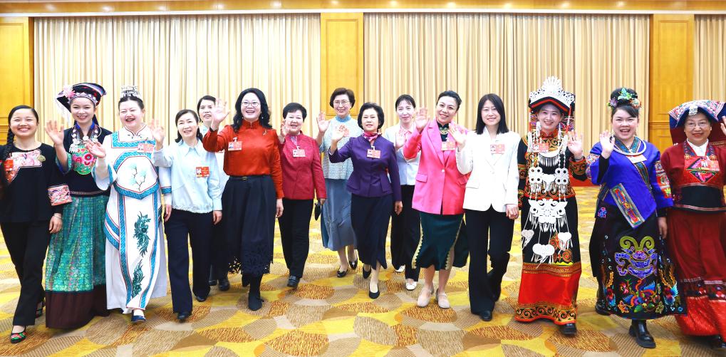 图为贵州代表团的女代表们在一起。(受访者供图)