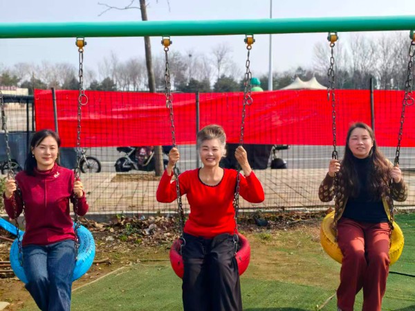 随后,老同志们走进田间地头,开展挖荠荠菜活动。大家手持小铲,俯身于新绿之间,仔细搜寻春天的“宝藏”。她们动作娴熟,挖野菜、话家常,在劳动中感受自然的馈赠,尽享田园之乐。随后的秋千体验环节,更是让大家仿佛重回童年时光,轻盈摇曳间,荡起的是笑声,放飞的是心情。