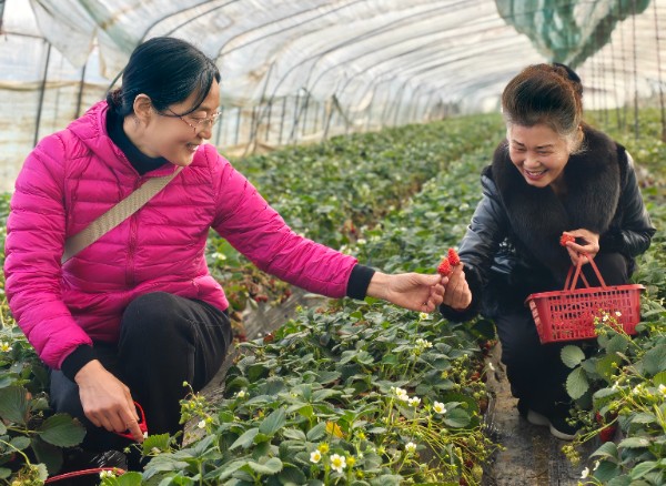 活动当天,春风和煦,万物复苏。在分行工作人员的陪同下,老同志们首先来到生机盎然的草莓采摘园。步入大棚,果香扑鼻,绿叶掩映下是一颗颗鲜红饱满的草莓。大家手提小篮,穿梭在田垄间,一边精心挑选成熟的果实,一边亲切交谈,回忆往昔奋斗岁月,分享生活点滴,欢声笑语此起彼伏。指尖轻触,采撷的是春日的甘甜,更是相聚的喜悦。