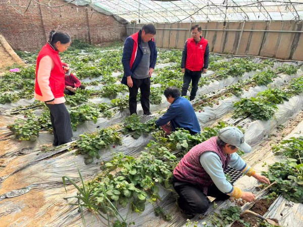 濮阳市振兴农业种植有限公司的草莓种植基地面临缺棵较严重、草莓市场行情下滑的双重问题,服务团专家结合基地实际,提出套种芸豆的优化建议,利用草莓畦种植一茬芸豆,通过套种模式提高土地利用率,弥补草莓市场行情下滑带来的收益损失。同时专家强调草莓种植后期需重点防治红蜘蛛,若红蜘蛛防治不到位,将直接影响芸豆的产量和品质,需做好常态化监测与科学防治。