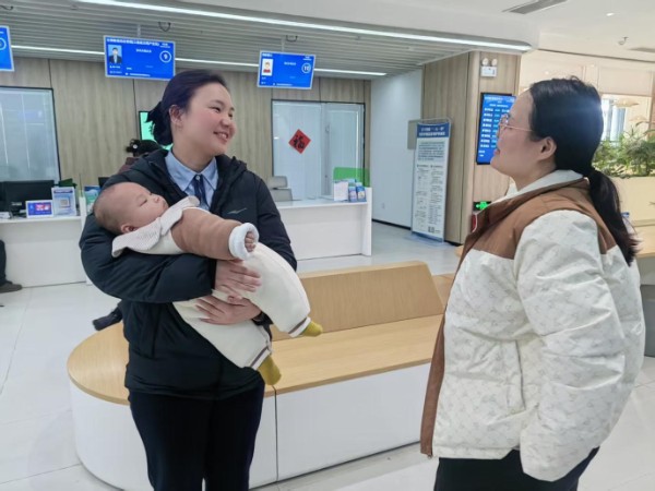 20多分钟里,涂亚文动作轻柔、语气和善,在她的悉心照料下,怀中的宝宝十分安稳,全程没有哭闹。这一暖心举动被现场等候办事的群众看在眼里、记在心里,大家纷纷点头称赞,直言“这样的服务,真是太贴心了”。