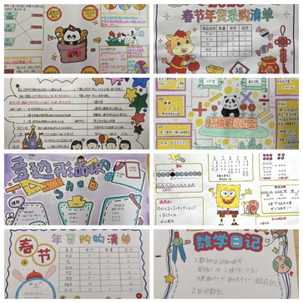 同学们通过“数学日记”与知识点手抄报,对已学的数学概念、公式与典型例题进行了系统梳理与创意呈现。这种图文结合的方式,既巩固了理论知识,也体现了对数学逻辑的深入理解与生动阐释。