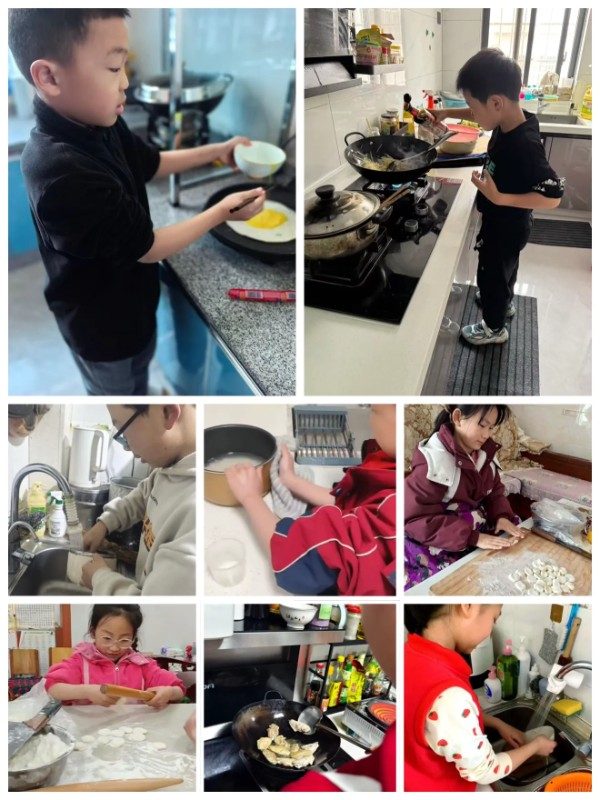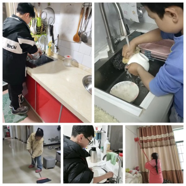 同学们积极承担各项家务劳动,从清扫整理到洗涤收纳,在亲身实践中学习自理、分担家庭责任,体会劳动的价值与父母的辛劳。