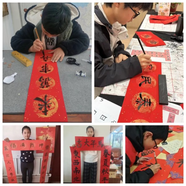 红纸墨迹,笔走龙蛇。同学们书写春联的照片与作品,洋溢着浓厚的节日氛围。在一笔一划之间,不仅锤炼了书法技艺,更传递了对新春的祝福与对中华优秀传统文化的感悟。