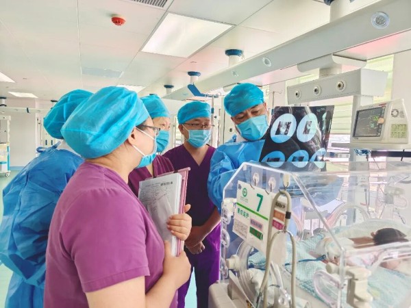 危急时刻,漯河市第二人民医院迅速启动应急预案,新生儿科团队第一时间赶到产房,保暖处理隔绝低温,无创呼吸支持为微弱的呼吸提供支撑……每一步都精准而迅速。随后,通过绿色生命通道,患儿被快速转入NICU,为后续的救治赢得了宝贵的时间。