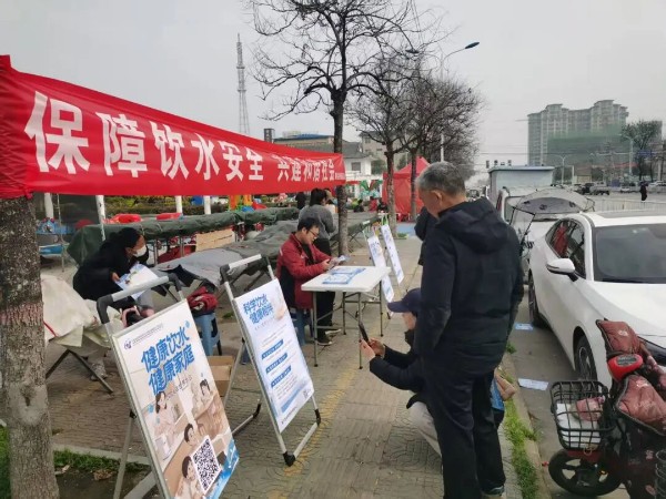 “大爷,您看这水,透亮没异味只是第一步。”工作人员刘洋指着展板上的色度对比图,“咱们县里的水厂出厂水都符合相关各项指标,但家里水管老化、储水不当,二次污染可得防着点。这宣传折页上面有家庭饮水消毒技巧,您回去试一试。”