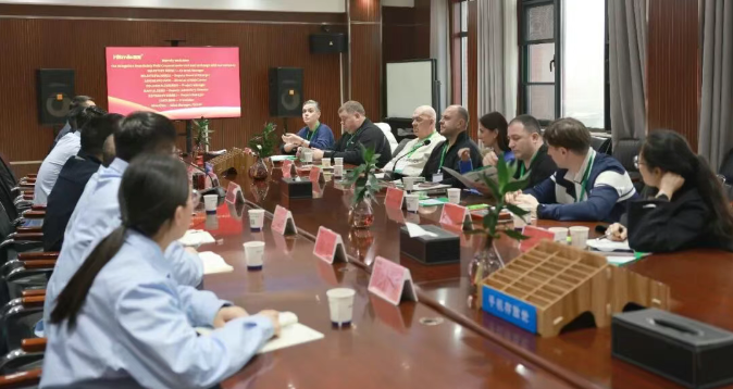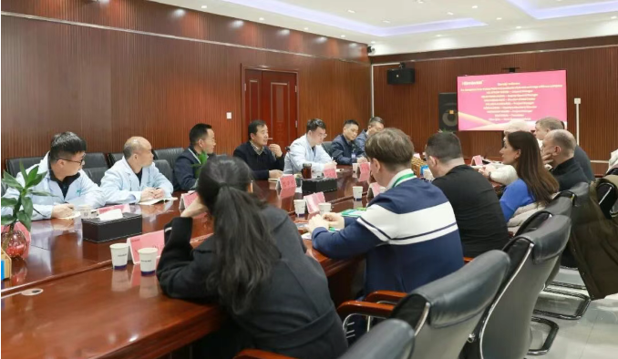实地参观后,代表团与瀚斯集团董事长申艳林,集团党支部书记、副总经理梁中普和外贸部、研发技术部、质量部负责人座谈交流。