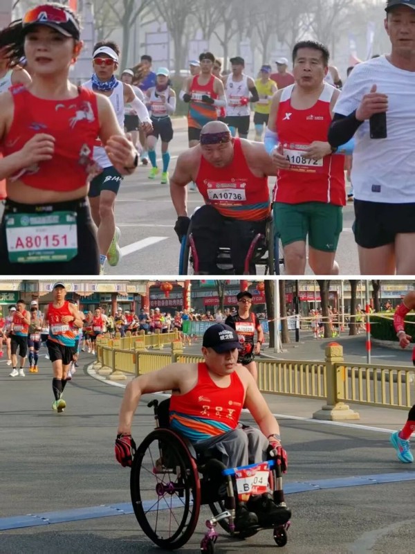 赛道之上,12名肢残选手用行动诠释自强不息的精神内核。尽管身体存在不便,但他们怀揣着对运动的热爱与对挑战的渴望,在赛道上奋勇向前。11名轮椅选手双手奋力转动车轮,每一次发力都凝聚着坚持与勇气,步伐虽异,初心不改;大家携手前行,相互鼓励,用汗水突破身体的局限,用拼搏书写着自尊、自信、自强、自立的动人篇章,成为安阳马拉松赛道上一道独特且耀眼的风景线。