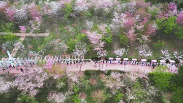 在昆明市寻甸县,千亩樱花次第绽放。当地探索“赏花+”业态,构建起多元消费体验。寻甸县凤龙湾景区营销负责人张照丹介绍,今年景区围绕“花”打造的产品主要有三个亮点:第一是游客可以坐着火车或者坐着游船看樱花;第二个是“花+运动”,游客可以选择在樱花大道旁边的生态步道跑步或骑行;第三个方面是“花+餐饮”,景区推出了由花来打造的菜品。