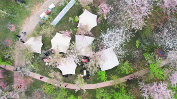 山花间,一顶顶帐篷错落分布,樱花火锅热气腾腾。当地今年创新推出樱花主题火锅、围炉煮茶等多元业态,同步打造风铃长廊、休闲天幕等沉浸式文旅场景。“一边赏美景,一边涮火锅,既饱了眼福又饱了口福,体验感特别好,让人觉得很惬意、很浪漫。”游客王杰说。